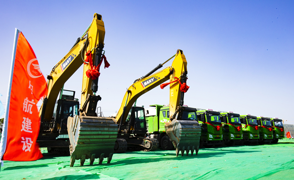 北京市长城伟业投资开发总公司党委书记、董事长单景民宣布开工后,礼花绽放、挖掘机开挖土方,各位领导为项目奠基培土。在隆隆鸣笛声中,雁栖国际社区A-01#住宅等14项工程项目正式开工。